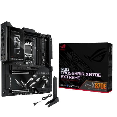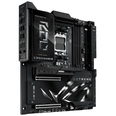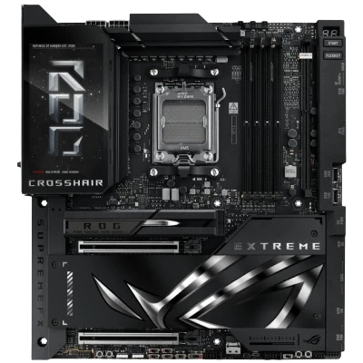 The ROG Crosshair X870E Extreme is the flagship AMD Ryzen™ 9000 series motherboard, designed for the most discerning users. It provides the ultimate foundation for AM5 CPUs, DDR5 memory, and PCIe® 5.0 components to ensure maximum performance and future-readiness. Its comprehensive connectivity includes USB4®, and the integrated 5-inch LCD offers a unique way to monitor system performance or add a touch of personalized style.