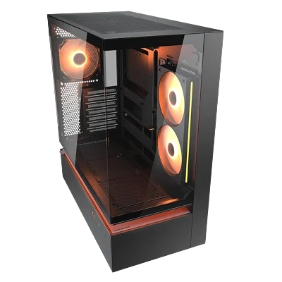 The CFV235 is a new kind of PC case featuring the innovative Central Floating Ventilation (CFV) structure. This divides the PSU cabin and main chamber, retooling the open space in between as a cooling advantage by accessing extra ventilation. An optimal combination of a full panoramic view, compact footprint and architecturally-enhanced cooling, the CFV235 empowers airflow beyond ordinary dimensions.