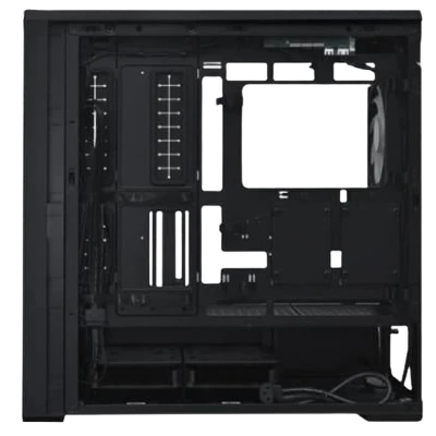 Clean build made easy: A multifunction cover with graphics card holders, a PSU shroud and a translucent rear cable cover offer effortless cable management
