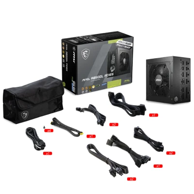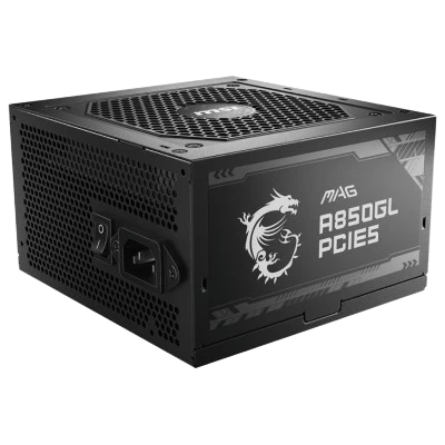 The MAG series fights alongside gamers in pursuit of honor. With added military-inspired elements in these gaming products, they were reborn as the symbol of sturdiness and durability. ATX 3.1 Ready It has an output port that is compliant with PCIe 5.1 and Intel PSDG(Power Supply Design Guide) ATX 3.1, also the MAG A850GL PCIE5 power supply can hold up to 2x total power excursion and 3x GPU power excursion. ENERGY EFFICIENCY CERTIFICATION The efficiency of your power supply directly influences your system’s performance and your power consumption. The 80 PLUS Gold and Cybenetics Gold certification promises lower energy consumption and higher efficiency. COMPACT SIZING Smaller than typical PSUs on the market, this power supply unit that can save space and make it easier to organize cables in the computer case by freeing up more room inside. MSI A850GL PCIE POWER COMPACT SIZING *The photo is only for illustration ONLY WHAT YOU NEED The connectors that required by the build need to be used, significantly reducing cable clutter and simplifying the system’s overall build. Additionally, the included cable pack provides a storage solution for any unused cables. ALL THE MORE ORGANIZED Organizing cables is often the most bothersome part of building a PC. The flat cables make cable management easier and less of headache! Thanks to the flat cables, the entire system can be more organized and has more room for unobstructed airflow. MIS A850GL PCIE5 *The photo is only for illustration FLUID DYNAMIC BEARING The power supply’s fan sports a fluid dynamic bearing that perfectly balances cooling performance and noise level. MSI A850GL PCIE5 Power dynamic bearing *The picture is for illustrative only. DC to DC & Full bridge DC to DC and Full bridge be combined to achieve higher conversion efficiency, stable output voltage, and quick voltage adjustment for different usage scenarios, thus providing a stable power supply design. MSI A850GL PCIE5 DC to DC Bridge THE POWER YOU HAVE The single rail supply of power can properly deliver the power you need. For high-performance graphics cards and CPUs, this power supply's CPU & PCIe connectors are more than plenty. PROTECTION MECHANISMS To make sure the entire system can operate safely and stably at all times, the power supply comes with a number of protection mechanisms to give you the best peace of mind. OCP Over Current Protection OTP Over Temperature Protection OVP Over Voltage Protection OPP Over Power Protection UVP Under Voltage Protection SCP Short Circuit Protection CONNECTORS ATX Cable x1 PCIe (8 PIN to 6+2 PIN) Cable x2 EPS (8 PIN to 4+4 PIN) Cable x2 PCIe (16 PIN to 16 PIN) Cable x1 SATA Cable x2 MOLEX/FDD Cable x1 SPECIFICATION / FICHE TECHNIQUE AC Input 100-240V~, 12A , 47-63Hz DC Output +5V +3.3V +12V -12V +5Vsb 20.0A 20.0A 70.5A 0.3A 2.5A Total Power 110W 846W 3.6W 12.5W 850W CONNECTOR / CONNECTEUR ATX(20+4 PIN) EPS(4+4 PIN) PCI-E(16 PIN) PCI-E(6+2 PIN) SATA MOLEX(PERIPHERAL) FDD 1 2 1 4 8 4 1 LEARN MORE MAG A850GL PCIE5 ATX 3.1 ready, native PCIe 5.1 dual-color 16-pin cable Supports NVIDIA® GeForce RTX™ 40 / 50 Series graphics cards Full modular design,Flat cables 80 Plus Gold certified for high efficiency Active PFC design,Industrial level protection with OVP,OCP,OPP,OTP, SCP,UVP 120mm Fluid Dynamic Bearing Fan LLC Full Bridge Topology with DC-DC module design Specifications WHERE TO BUY Surfshark-4 extra months of VPN protection Promotion Surfshark-4 extra months of VPN protection Get Your Voicemod PRO 30 days Promotion Get Your Voicemod PRO 30 days All images and descriptions are for illustrative purposes only. Visual representation of the products may not be perfectly accurate. Product specification, functions and appearance may vary by models and differ from country to country. All specifications are subject to change without notice. Although we endeavor to present the most precise and comprehensive information at the time of publication, a small number of items may contain typography or photography errors. Some products and configuration may not be available in all markets or launch time differs. Supplies are limited. We recommend you to check with your local supplier for exact offers and detail specifications. Feedback earth iconGlobal / English Community MSI Reward Program Member Center MSI Insider Social Media Forums ESport Teams Support Downloads Product Registration Warranty Information Online Customer Service Service Location Where To Buy Resource Press Room Awards Videos RSS Customer Stories Blogs Company Information About MSI Brand Story Innovation DNA CSR Investor Information Contact Information More Artificial Intelligence Brochure Wallpaper PSU Calculator Cookie Policy Privacy Policy Terms of Use Contact Us Copyright © 2026 Micro-Star INT'L CO., LTD. All rights reserved.