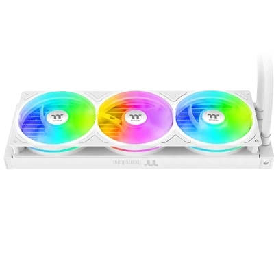 TH360 V3 ARGB Sync AIO Liquid Cooler Snow Edition has a powerful 360mm PWM fan module, a single-frame unit combining three 120 mm fans. Each fan provides an airflow of 85.29 CFM with 3.86 mm-H2O static pressure while maintaining a noise level of 37.8 dB-A, offering exceptional cooling performance for your system.