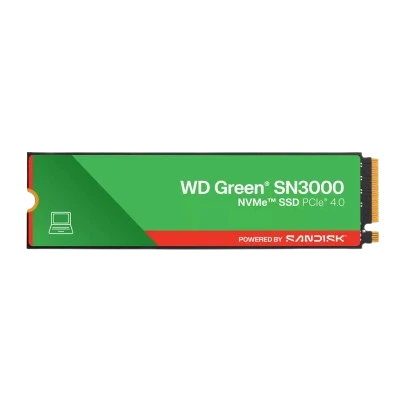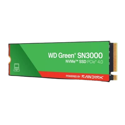 Energize your PC’s storage with WD Green SN3000 NVMe™ SSD Your PC can be faster than you imagine, and your important files can live right where you need them. Whether you’re upgrading your PC’s storage to launch applications, access files fast, or simply increasing capacity to save more files, the WD Green SN3000 NVMe™ SSD energizes your storage performance and provides much needed space. Experience PCIe® Gen4 read speeds up to 5,000MB/s2 in a slim M.2 SSD that allows you to use multiple apps with incredible responsiveness, so you can work without constraints. Exceptional storage performance with PCIe® Gen4 Maximize your PC’s performance with amazing speeds of PCIe® Gen4 NVMe™. Short boot times, quick application launches, and speedy web browsing with read speeds up to 5,000MB/s.2 High capacity SSD so you can keep saving your files Expand your PC with up to 2TB1 of solid-state storage and keep your photos, videos, and other important files immediately within reach. Slim M.2 SSD for PC compatibility The WD Green SN3000 SSD utilizes a single-sided M.2 2280 to be compatible with thin laptops and small PCs, while providing high capacity to expand your PC’s storage. Breathe new life into your current computer Multitask across applications with breathtaking responsiveness, transfer and save files faster, and improve your workflow with NVMe™ and Sandisk nCache™ 4.0 Technologies. Reliable Storage, a brand you can trust Rely on the brand that professionals trust, with a 3-year limited warranty.3 Have peace of mind for all your data. Migrate your data with Acronis True Image for Sandisk software Move your data from your old NVMe™ drive to your new WD Green SN3000 NVMe™ SSD with our free downloadable Acronis® True Image™ for Sandisk data migration software, so you can continue where you left off.