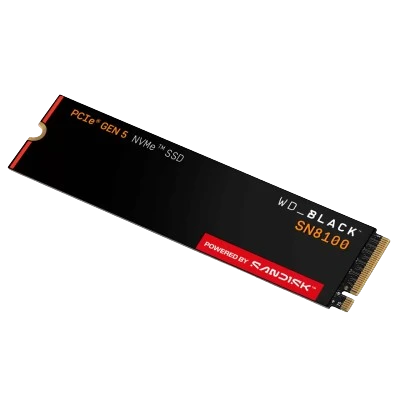 Experience the pinnacle of SSD performance with the WD_BLACK™ SN8100 NVMe™ Gen 5 SSD Build your new gaming or workstation system with our cutting-edge PCIe® Gen 5 SSD, delivering blistering speeds up to 14,900 MB/s2 for demanding tasks like high-level gaming, professional content creation, and AI applications. As an industry-leader for PCIe® Gen 5 power efficiency, the WD_BLACK™ SN8100 NVMe™ SSD harnesses advanced TLC 3D CBA NAND technology to help ensure performance and reliability, while a low-power profile keeps your system running smoothly. Our new integrated heatsink features a signature WD_BLACK™ design and customizable RGB lighting. Engineered with anodized aluminum, double TIM pads, and a sleek low-profile design, it helps keep temperatures in check with a superior passive cooling design — no noisy fans or extra power cords required. With up to 8TB1 of storage and a suite of powerful features, this SSD is the ultimate upgrade for discerning users. Experience the breakneck speed of PCIe® Gen 5 Drastically enhance your gaming and content creation experience with the speed of PCIe® Gen 5.0x4 NVMe™ M.2 SSD technology — perfect for gaming, content creation, and loading models for AI-powered applications. Blistering speeds combined with immense capacities With the help of our nCache™ 4.0 feature, the WD_BLACK™ SN8100 SSD reaches sequential read speeds up to an astonishing 14,900MB/s,2 sequential write speeds up to 14,000MB/s,2 and over 2,300,000 IOPS2 of random performance (2TB – 4TB1), all while offering up to a massive 8TB1 of capacity. Designed to perform Our latest TLC 3D CBA NAND technology provides our most advanced combination of speed and reliability to help ensure your experience is at top performance, no matter if you’re gaming or working. Award-winning performance Don’t take our word for it - leading reviewers in the storage industry have named the WD_BLACK SN8100 SSD as one of the fastest, most powerful, and most efficient SSDs on the planet.7 An industry-leader for PCIe® Gen 5 power efficiency Enjoy over 100% more power efficiency than our PCIe® Gen44 drive at an average operating power of 7.5W2 or under, which helps make your rig simpler while delivering astonishing performance without any added stress to your system. Speed meets reliability With up to 4,800 TBW3 (8TB1 model) endurance and our latest TLC 3D CBA NAND technology, you get heightened speeds and reliability. Meaning, you can handle even the most intense tasks, such as gaming, video editing, live streaming, and AI workloads. Room for revolution Hold your biggest projects and still have room for OS updates, models for AI-powered applications, large datasets, and your game library thanks to immense capacities up to 8TB.1 And with the latest security features like TCG Opal, you can help protect and encrypt your sensitive data. Custom WD_BLACK™ heatsink Purpose-built for next-level performance, the custom WD_BLACK™ heatsink is the lowest profile heatsink available on a PCIe® 5.0 drive with integrated RGB lighting. Constructed from anodized aluminum and optimized for efficient, silent cooling, it requires no fans or additional power. The sleek design includes a customizable RGB light, allowing you to match your build’s aesthetic. Do more with SANDISK software The downloadable SANDISK Dashboard5 (Windows® only) monitors your drive’s health, helps keep your drive up to date, and lets you customize your heatsink’s RGB light, all in one place. Plus, the SANDISK Dashboard5 can automatically turn on Game Mode to boost performance when it detects you’re booting up a game. Effortlessly migrate your data from your previous drive to the WD_BLACK™ SN8100 SSD with Acronis® True Image™ for SANDISK.6